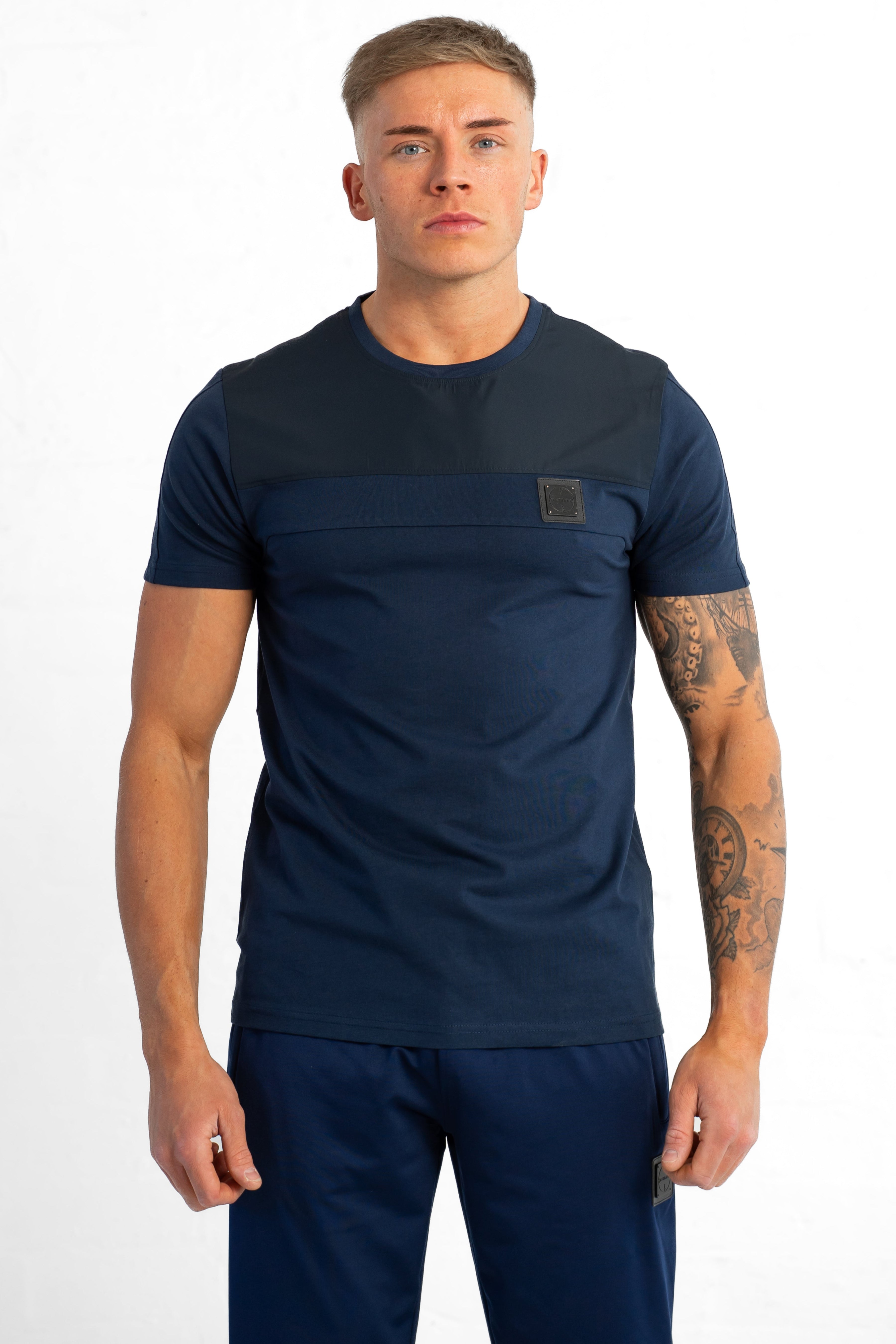 | 100% cotton tee with , cut and sew and woven panel on chest |